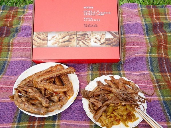禮盒裡面包含 → 鴨舌20支/ 鴨翅6支 / 脆腸200g / 酸菜200g / 雞腳15支