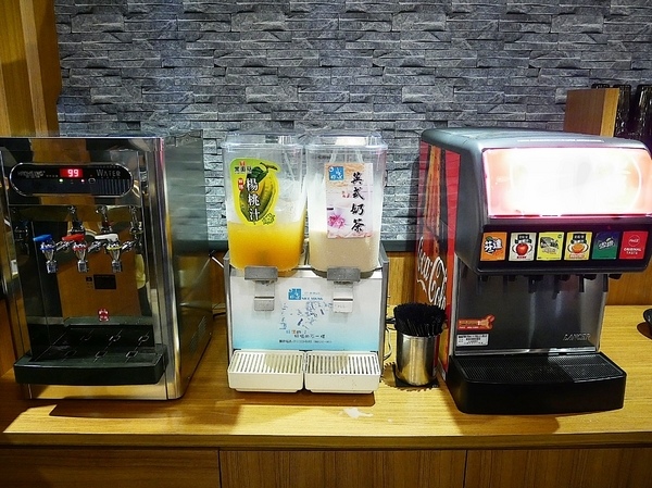 飲品的部分有可樂機還有楊桃汁、英式奶茶可以免費取用