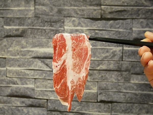 伊比例豬的油花分布相當均勻 每一塊的上頭都勾勒出美麗的脂肪紋路
