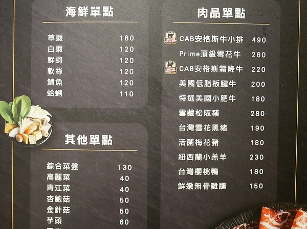 先附上菜單