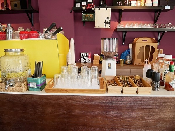 誠吾採半自助 茶水、餐具和醬料都在櫃檯的桌上