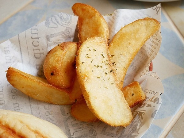 帶皮薯沒有炸到太硬 外皮微酥 而內部的馬鈴薯口感非常鬆綿