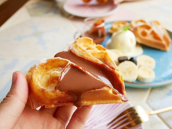 店家的鬆餅是愛心形狀 造形相當可愛又討喜