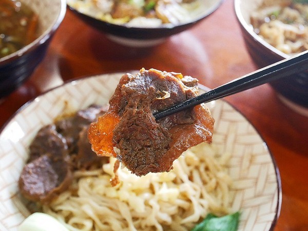 店家的乾拌麵看起來也是用料大方 滿滿牛肉塊 瞬間吸引住眼球