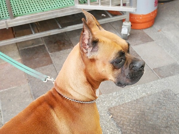 店門口養了一隻大狗 雖然他的臉看起來很兇 但其實人家是個友善的女孩兒