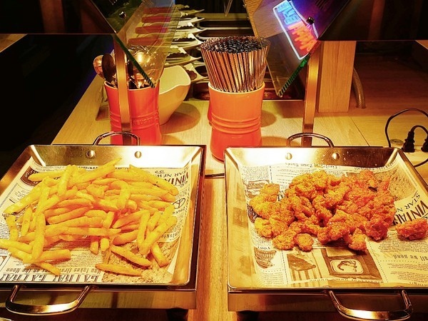 店家有炸薯條和韓式炸雞 薯條太常見 我就沒夾 但韓式炸雞是我的愛 來看看水準如何