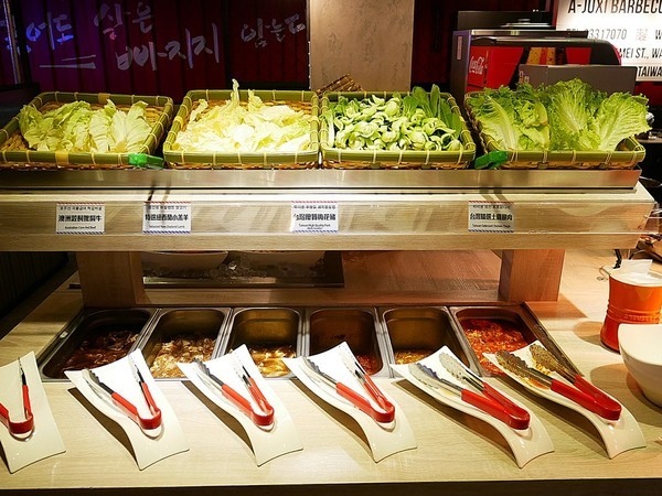 除了有各種綠色蔬菜之外 韓式燒肉最重要的就是泡在各種醬汁裡面的肉
