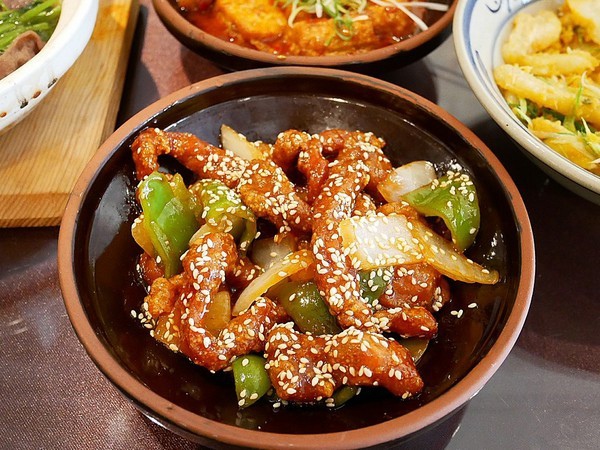 除了豬肉之外 裡面還會加入洋蔥和青椒拌炒 整個配色豐富不少
