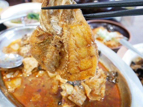魚肉的口感挺細緻 上側還好 下側浸在辣湯中較久 所以辣度很高