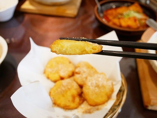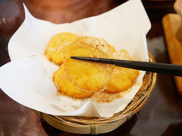 跟平時吃到的麻糬不同 外層有炸過 上頭還灑了些糖粉