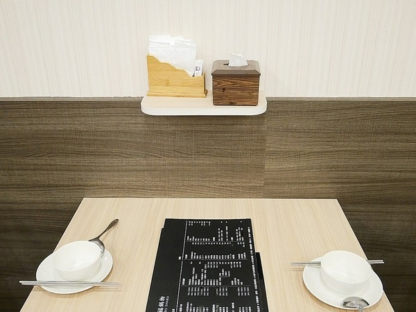 店家將衛生紙、濕紙巾和牙籤都放在桌子上方的小板子
