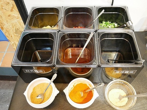 店內有提供飲料和調味料讓顧客自行取用
