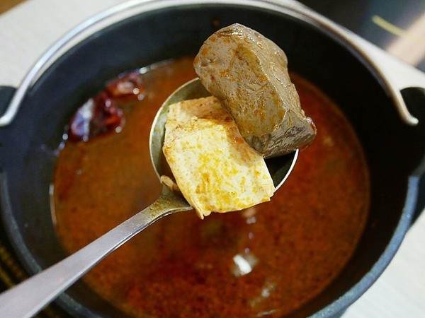 但不得不說,香氣真的還不錯,鍋中有放入一些豆腐和鴨血,滷到相當入味,雖然辣但真得很好吃