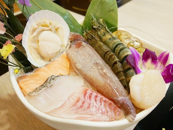 海鮮拼盤內食材還不少,有魚、蝦、貝類和小卷,種類相當豐富