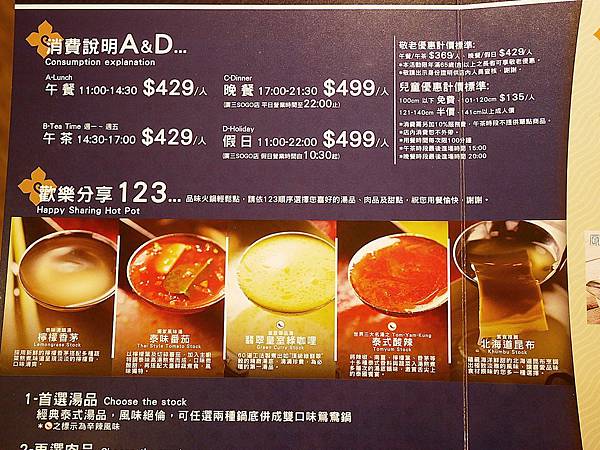 中午時段和午茶時段的收費都是一個人$429 而晚餐和假日則$499
