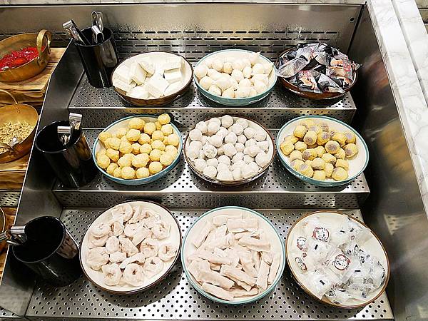 可以自取的火鍋食材包含各式火鍋料、丸類還有繽紛蔬菜