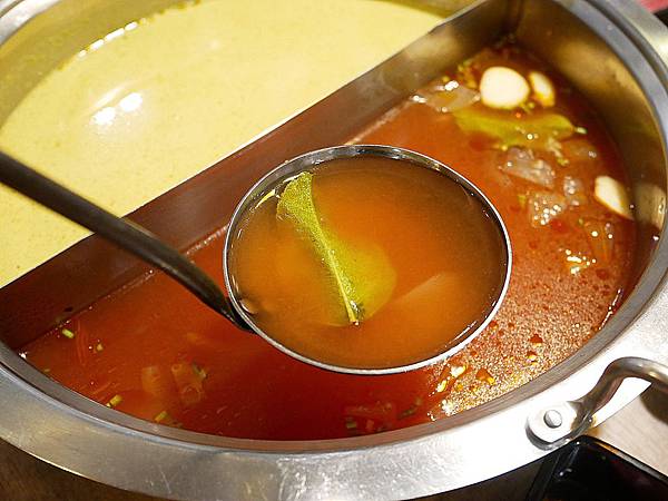 泰味番茄湯頭是用檸檬葉以及新鮮切塊番茄加入主廚特調高湯