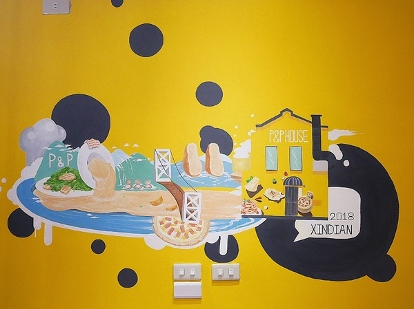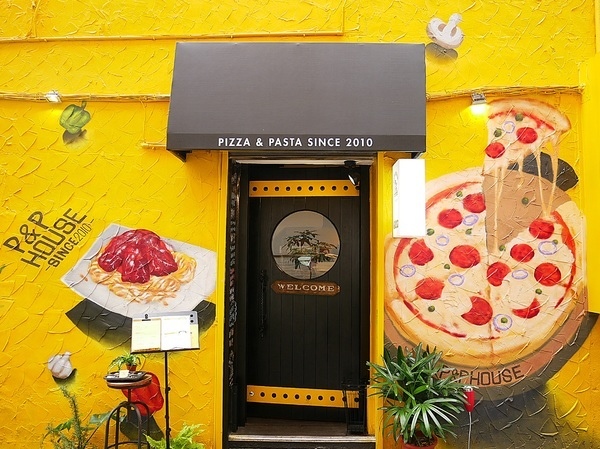 大坪林站巷中巷的"P&P HOUSE 義式鄉村料理"就有一個超亮的黃色牆面