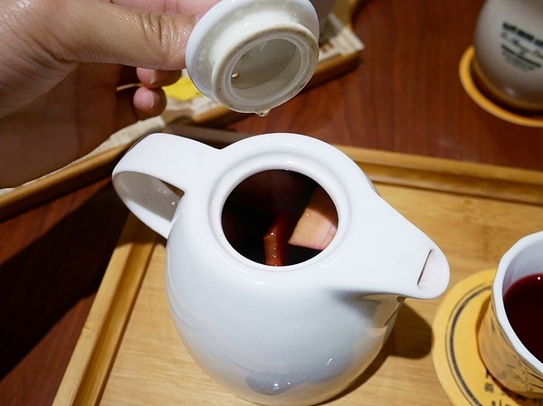 飲品上桌時,還貼心附上一隻湯匙,讓我可以把茶壺內的水果挖起來吃