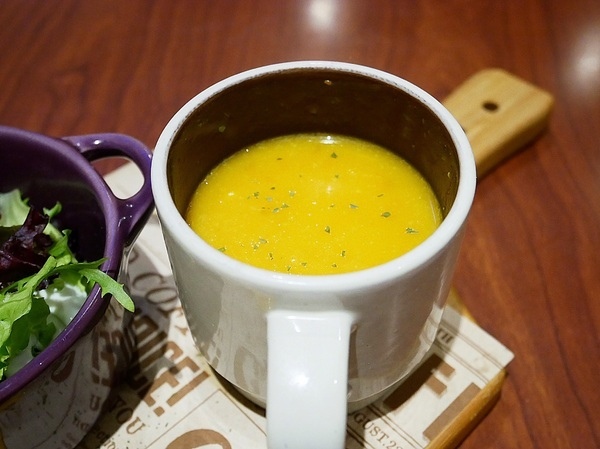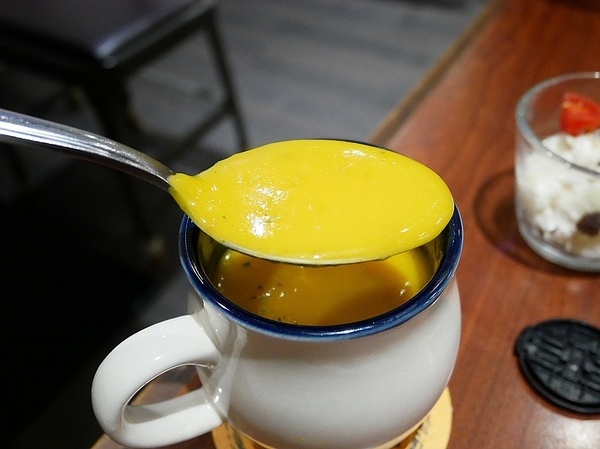 當天的主廚湯品是南瓜濃湯,非常濃郁而且每一口都喝得到南瓜攪細的口感