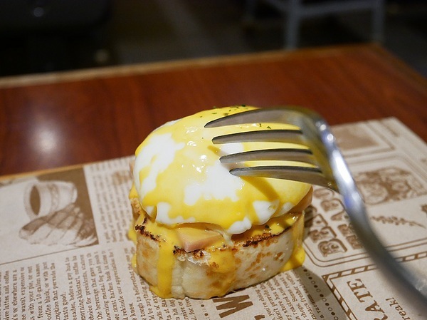 蛋黃與荷蘭醬搭配起來味道超好,還有軟綿麵包和鹹香火腿,不輸早午餐店的水準