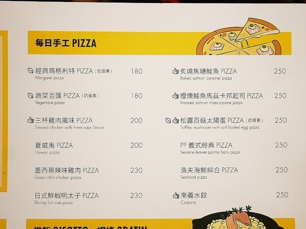 店內提供多種義式餐點,許多創意口味的結合讓人大開眼界,四種套餐組和任搭任選