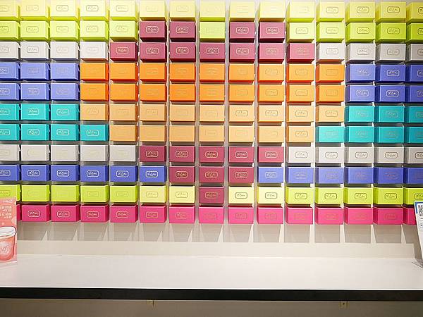 店內真的是各種色調組合而成 就連冰箱內的茶瓶也用各種顏色的貼紙區分