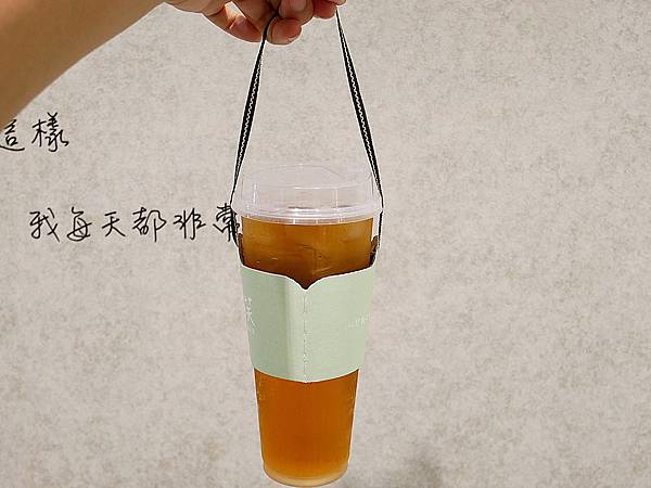 店員將飲品放入一個杯套中 這是免費贈送給消費者的 而且下次消費還可以折抵$5