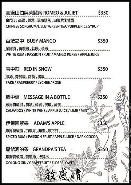 由鐵觀音琴酒、葡萄柚、接骨木搭配而成,所以兼具茶香和果香風味