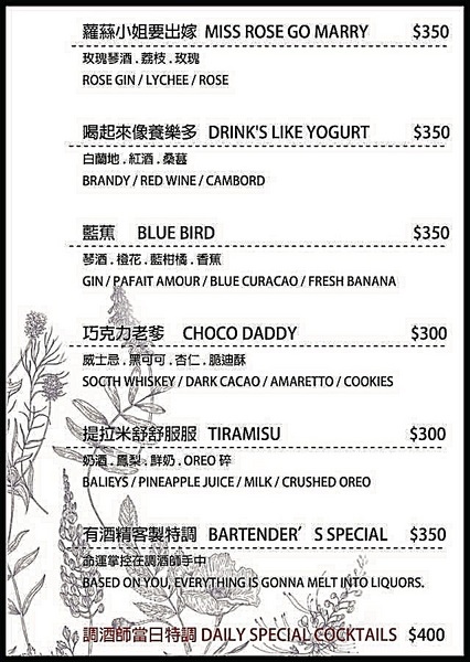 店家推出多款創意調酒,因為靜香對酒很挑剔,不是每一種酒都喜歡,所以特別請店員推薦