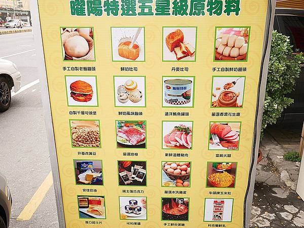 店門口立了一個移動式看板 上面將店家使用的原料全部列出來