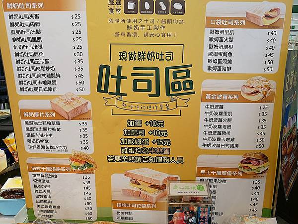 這張是吐司類的餐點 如果要看蛋餅或飯糰等其他餐點的菜單 → 菜單請點我