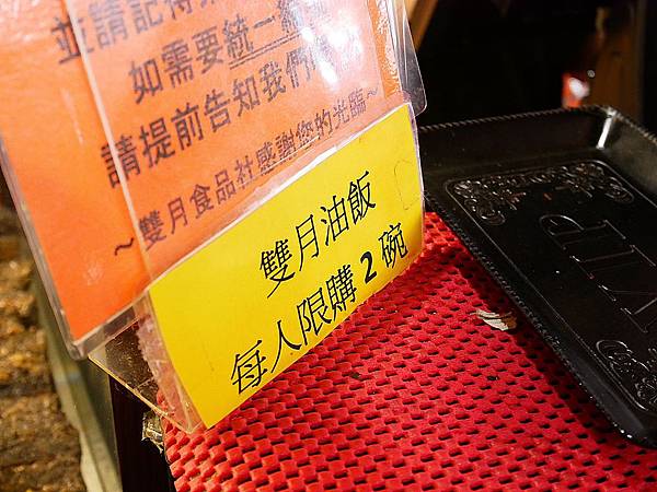店家的雙月油飯很熱銷 因為每日限量 所以每人限購兩碗,所以各位「飯桶」如果想多吃幾碗 記得帶小鳥胃的朋友去幫忙買飯