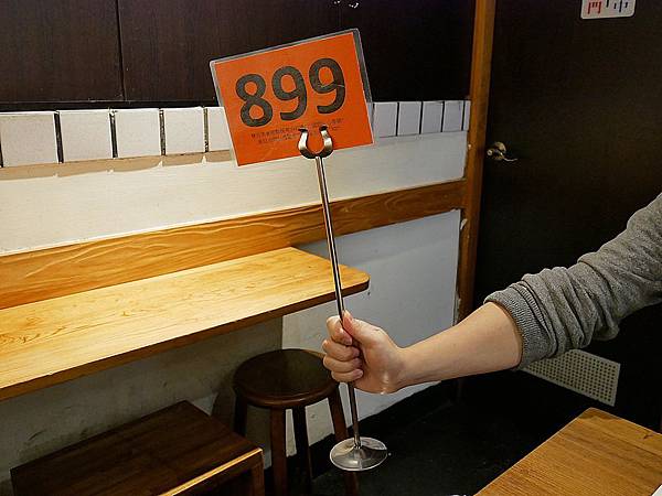 結完帳後 會拿到一個又長又大的號碼牌,記得擺在桌上 讓出餐的人可以快速在眾人之間找到你