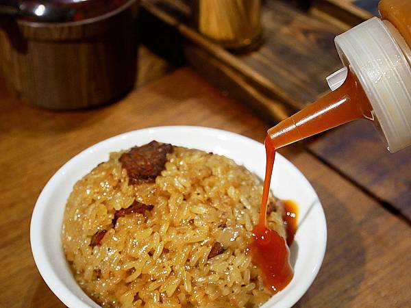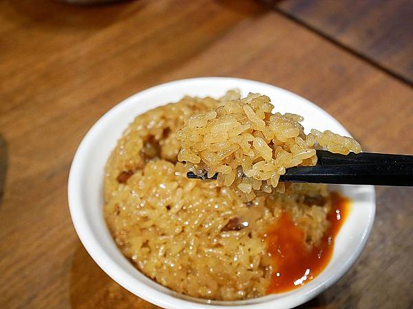 店員上桌後 特別提醒可以加點醬汁 味道會更出色,店家的甜辣醬搭配油飯真的還不錯 只是我還是喜歡原味,這樣才能吃出食物本身的香氣
