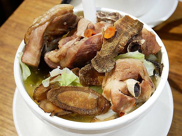 雞湯喝起來不僅有濃郁何首烏的香氣,還有高麗菜的甜香味,這款湯品的雞肉是最入味的一款,連顏色也整個煮進去,喝起來完全不油膩我喜歡