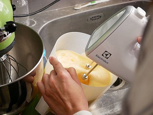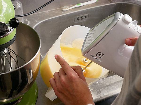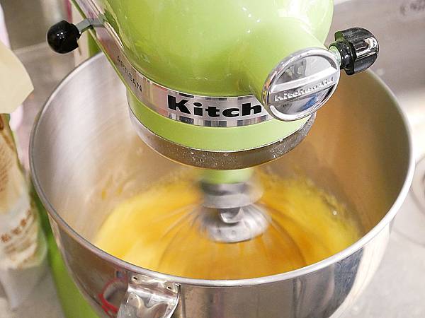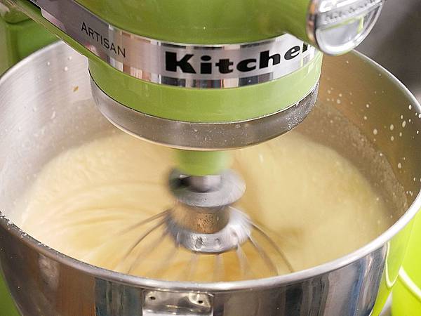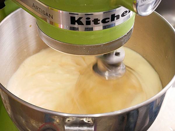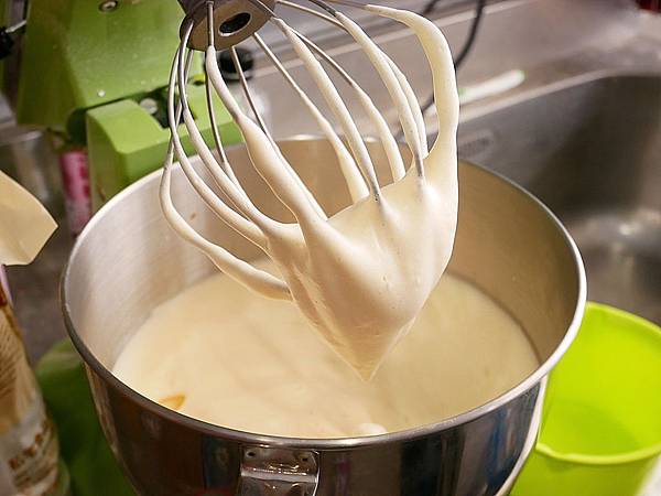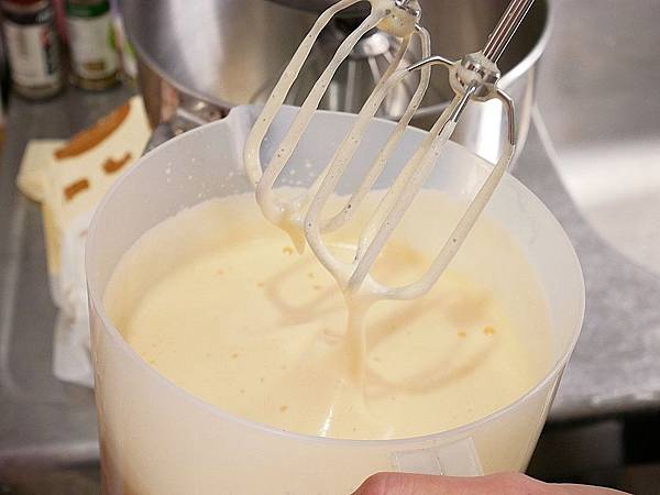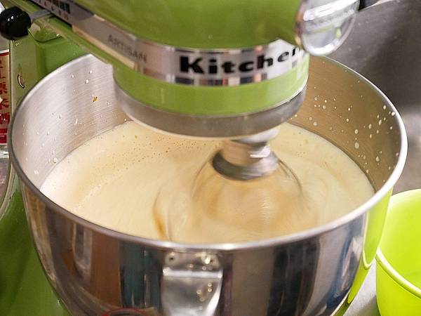 打完蛋用桌上型攪拌機打勻 當攪拌球拉起來的時候 要呈現濃稠狀