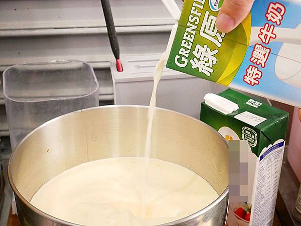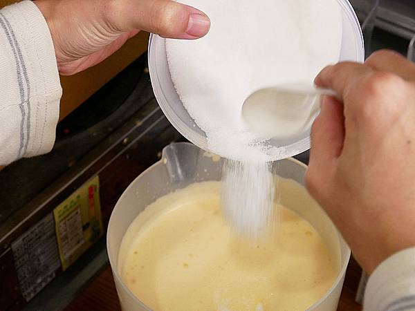 再加入老闆特別挑選的適量鮮奶油、鮮奶打勻
