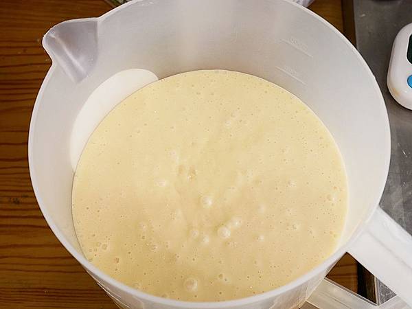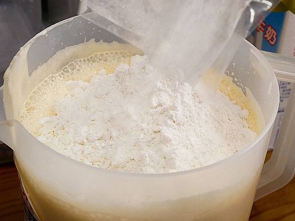 因為私宅雞蛋糕粉一包的量都是一壺漿的固定比例 所以直接全部加進去