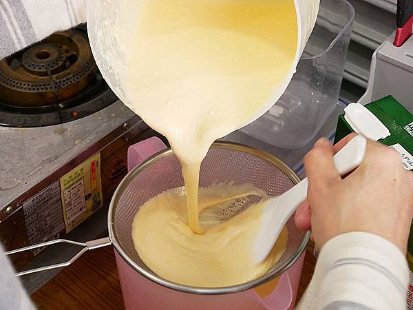過篩後就完成脆式雞蛋糕的粉漿