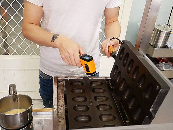 老闆將爐子打開預熱 準備要烤香噴噴的雞蛋糕給我們品嘗