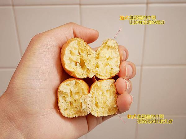 脆式雞蛋糕的空洞比較大也比較明顯