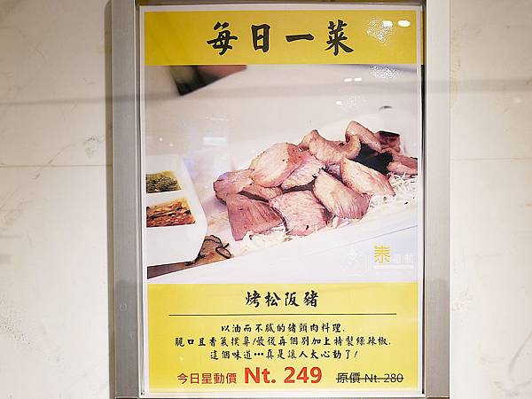 店家會在牆上掛出每日特價的菜色 我們拜訪當天是烤松阪豬