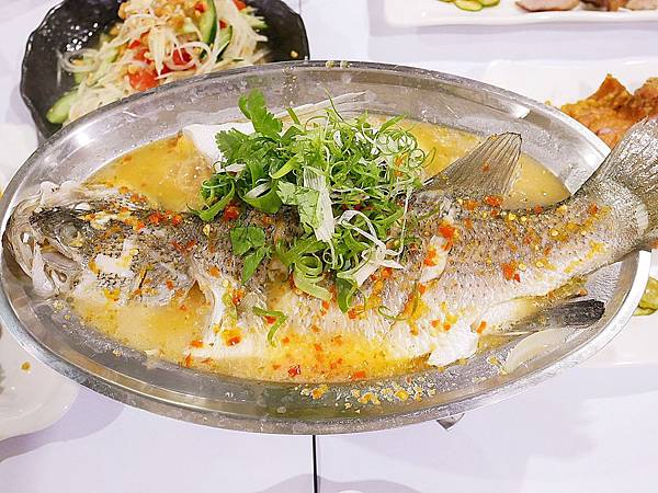 清蒸檸檬鱸魚非常大一條 魚的肉質很細緻 而且醬汁完全入到魚肉之中