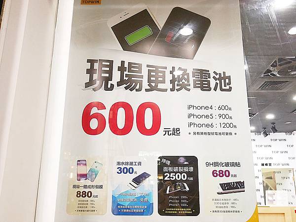 店門口有公告優惠資訊 現場更換電池只要$600起跳