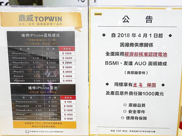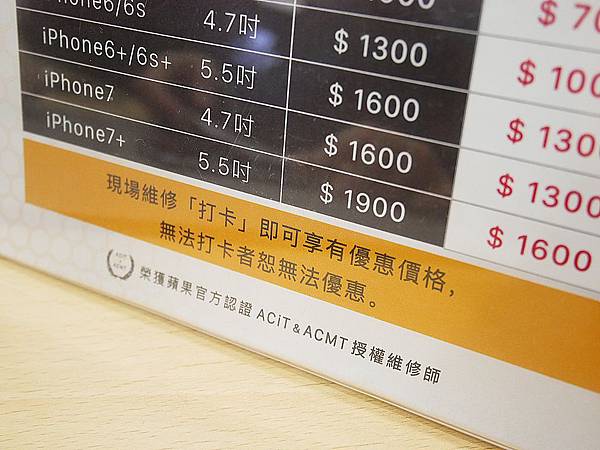 底部還有提到包膜、泡水除潮、更換面版等等的優惠價格
