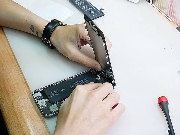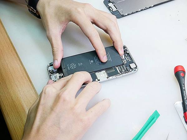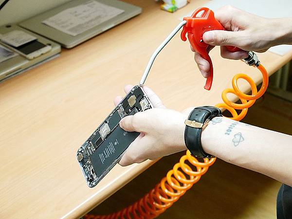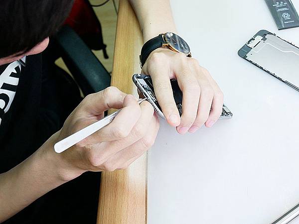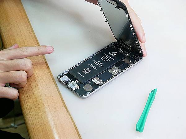 一開始維修人員會將手機拆開 並跟我們解釋蘋果手機的一些內部情況