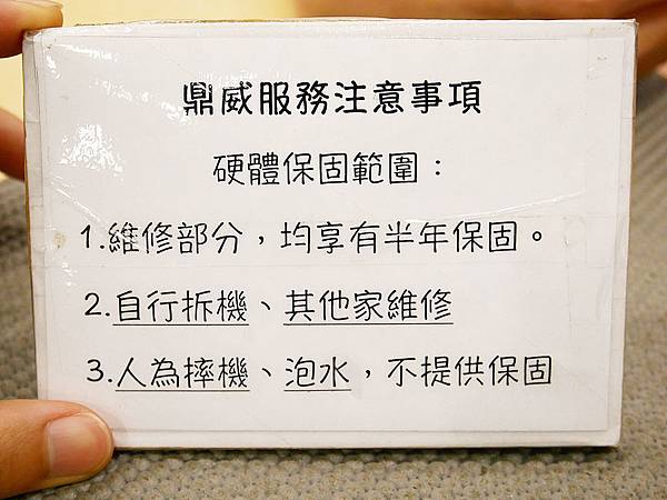 因為他們的保固是五間門市通用 所以用貼紙做認證
