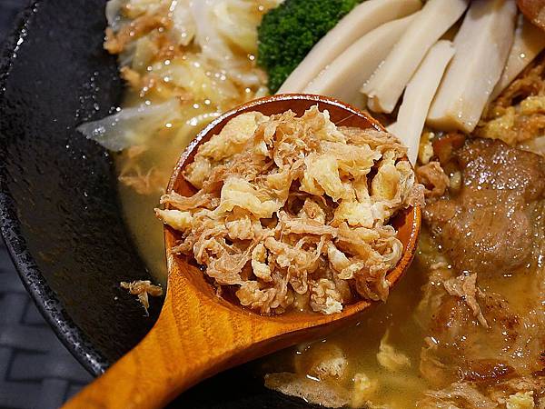 蔬菜很會吸湯,所以鮮甜的蔬菜風味加上濃郁酒香和一點麻油,有種吃麻油雞火鍋的錯覺