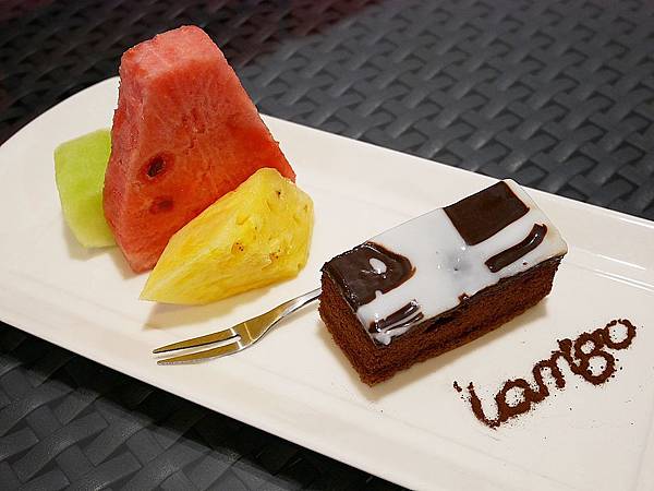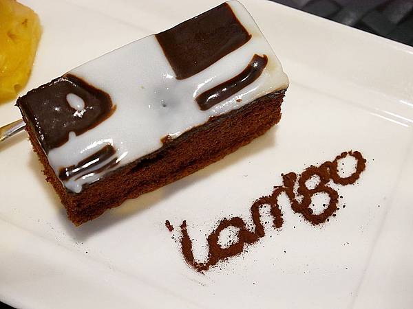 巧克力蛋糕上頭有用糖霜,看起來滿可愛,但是對不嗜甜的我來說,吃起來稍稍膩口
